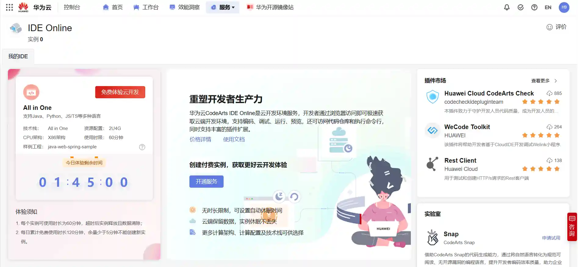 https://devcloud.cn-north-4.huaweicloud.com/cloudide