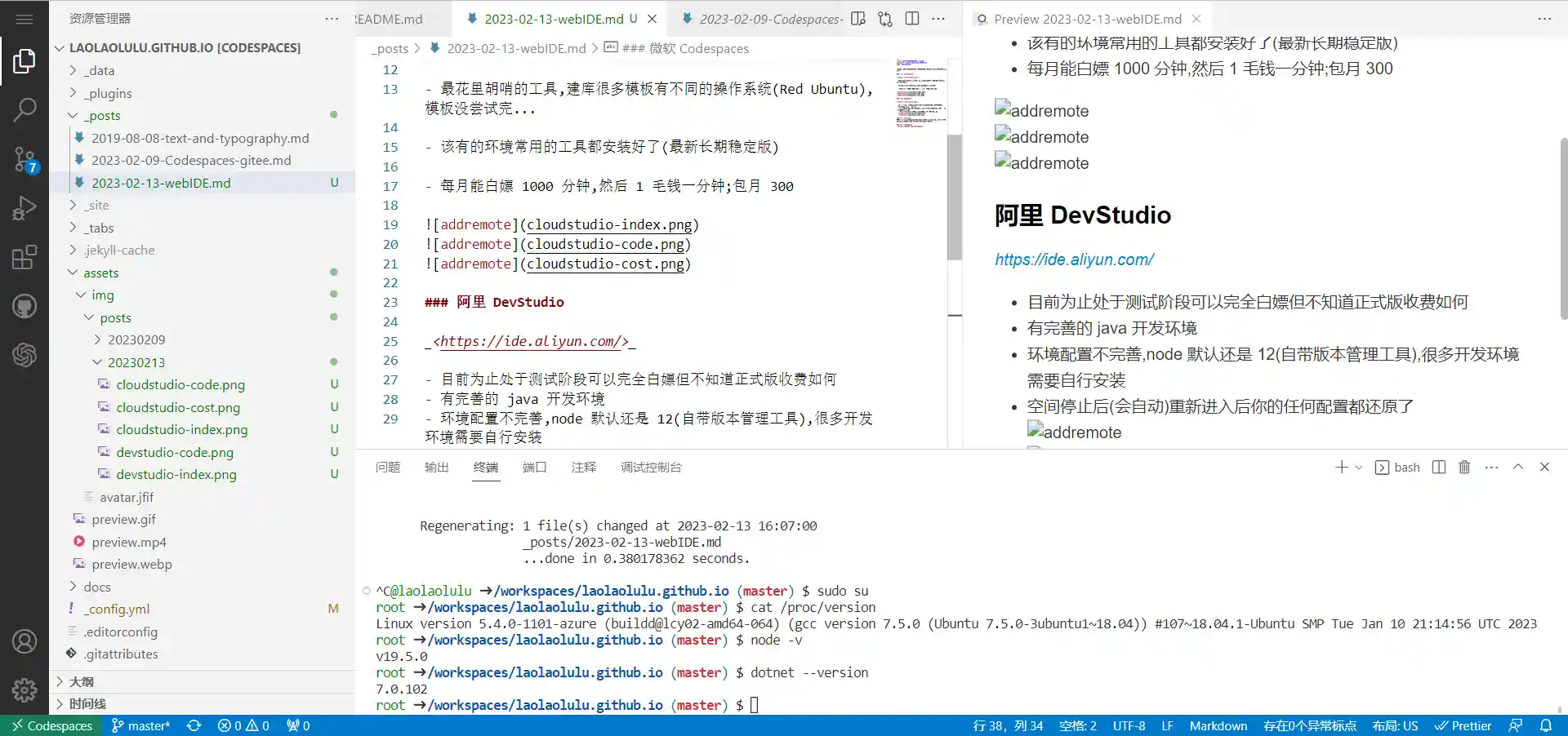 本人抱着颗白嫖的心态撸了一遍各大厂的 WebIDE(CloudStudio、DevStudio、Codespaces) 工具,现分享下白嫖经验