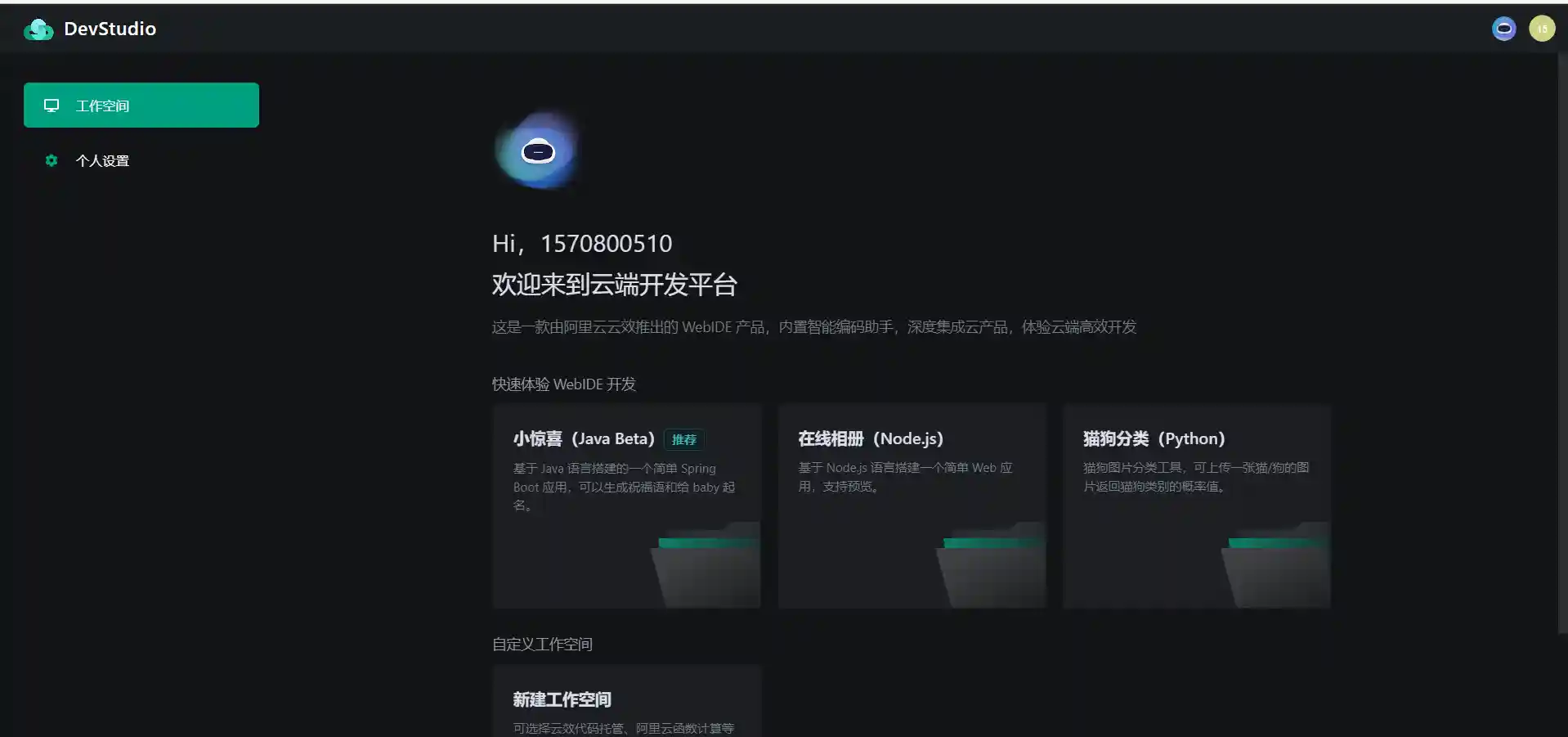 目前为止处于测试阶段可以完全白嫖但不知道正式版收费如何有完善的 java 开发环境环境配置不完善,node 默认还是 12(自带版本管理工具),很多开发环境需要自行安装空间停止(会自动)后重新进入你的任何配置都还原了